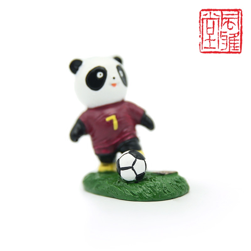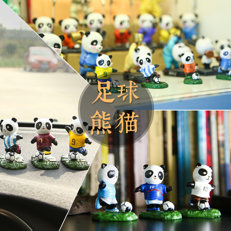 迷你足球熊猫 小摆件家居客厅房间车子装饰品摆设创意桌面 工艺品