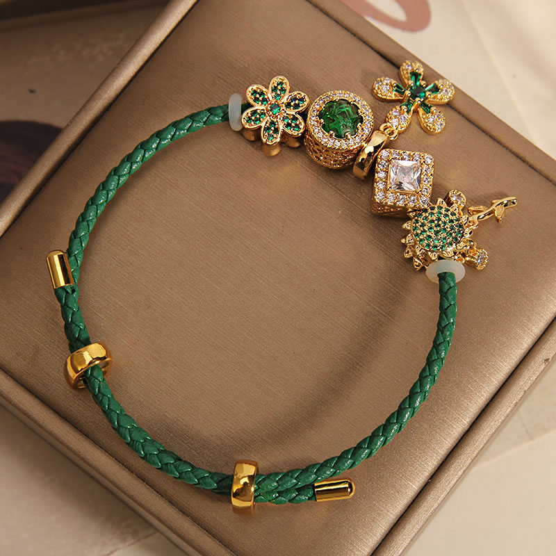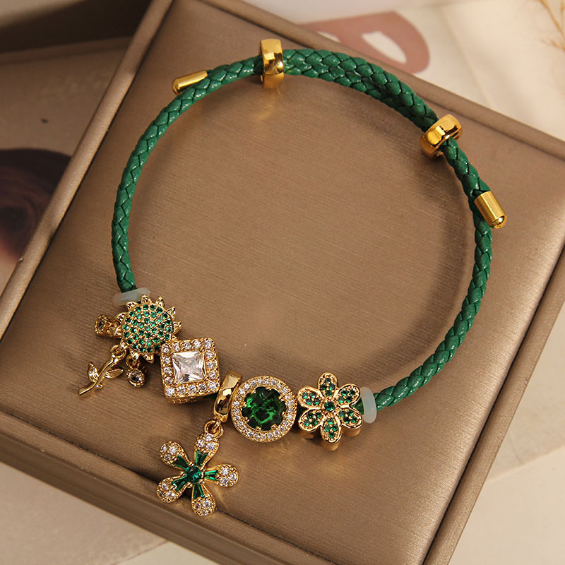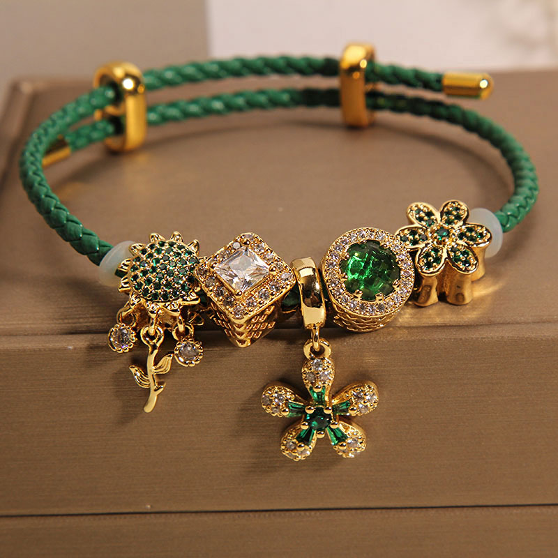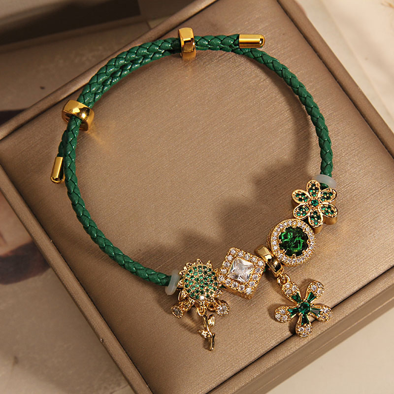 潘家风格森系绿色手镯女款小众微镶锆石向日葵花朵手串送女友闺蜜