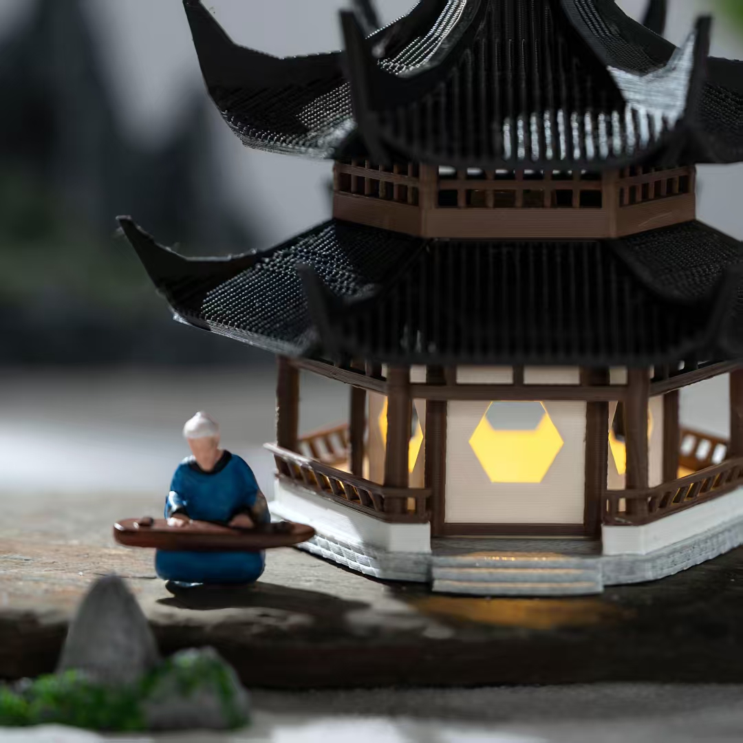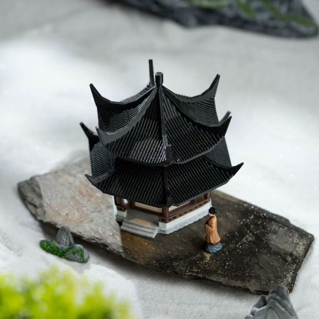 凉亭亭子摆件中式古建筑模型3D打印国风微景观假山盆景装饰新款
