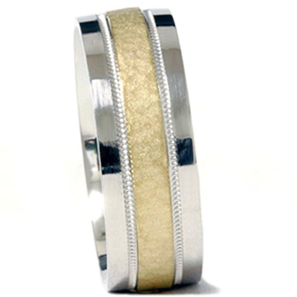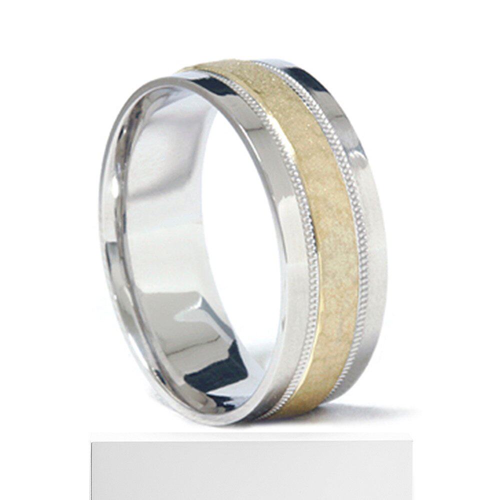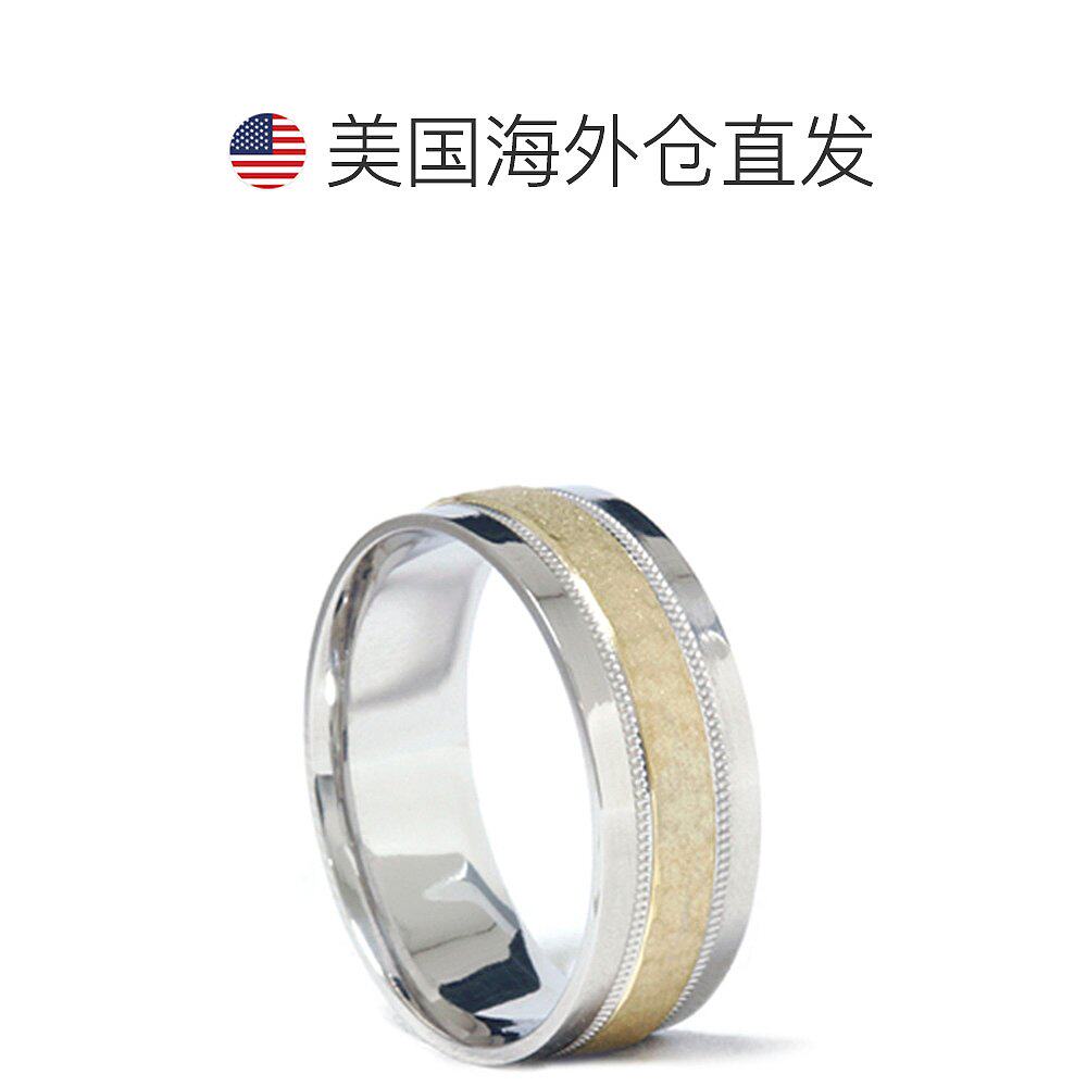 自营 pompeii3男士 950 铂金和 18K 金锤纹结婚戒指 - 18k 黄金
