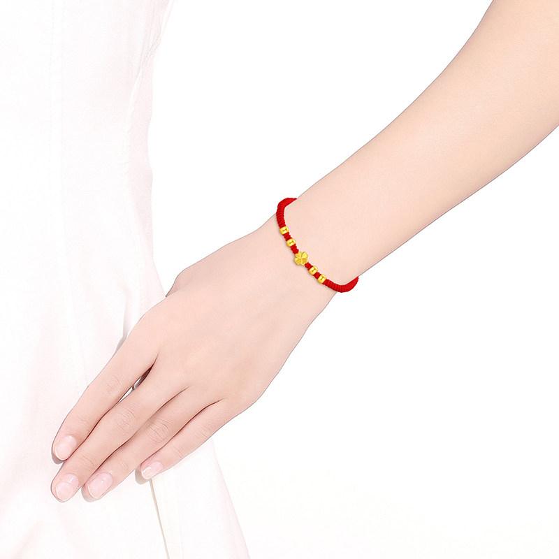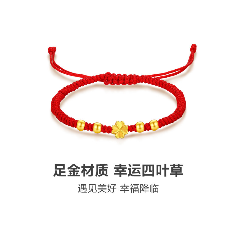 千年珠宝黄金四叶草手链女足金999转运珠红绳手串小金珠手链新款
