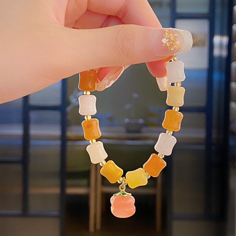 事事如懿~文艺复古中式金丝玉手链玛瑙柿子吊坠寺庙文创同款手串