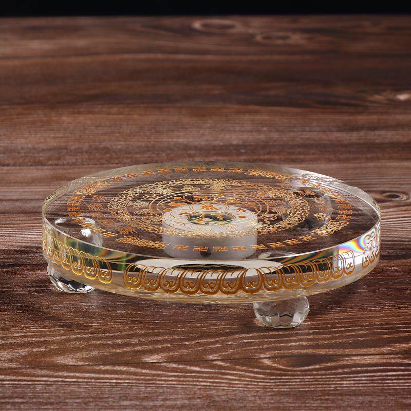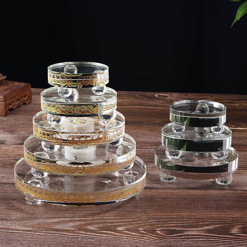 水晶底座托不发光圆形桌面摆件琉璃佛像舍利塔佛塔八吉祥图案底座