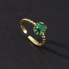 复古祖母绿色宝石戒指锆石眼睛蛇形金属戒指小众设计气质开口戒指