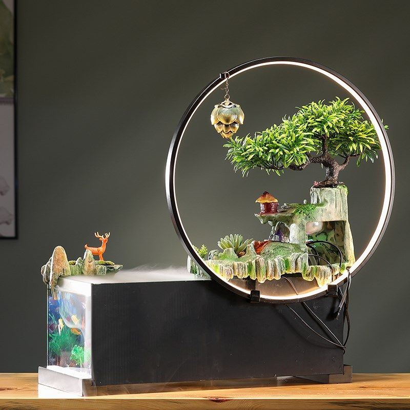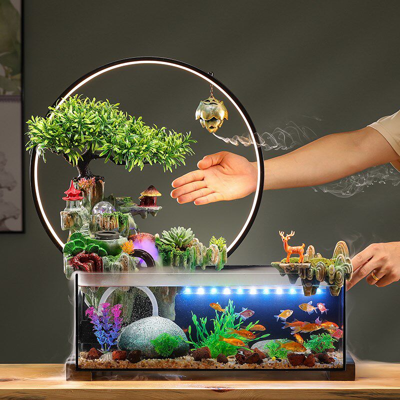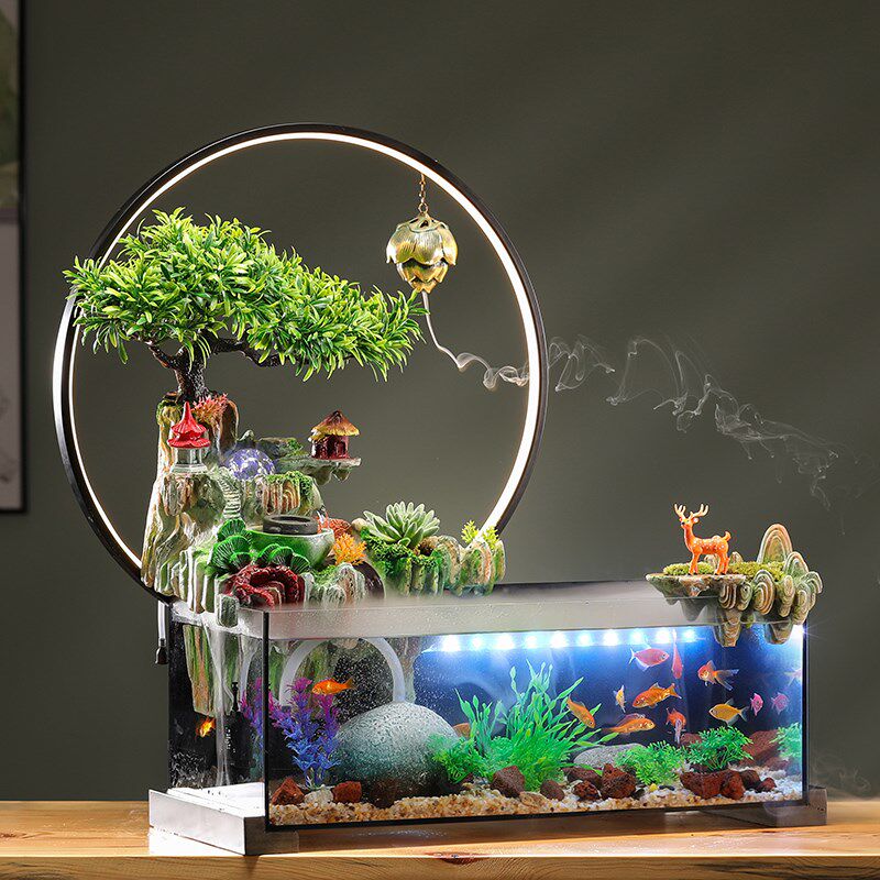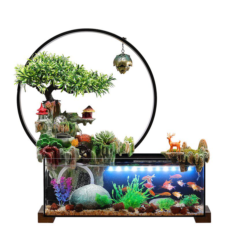 自带过滤特大号鱼缸客厅流水摆件循环水器生财装饰品乔迁新居礼品