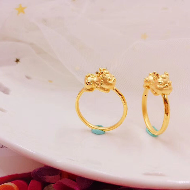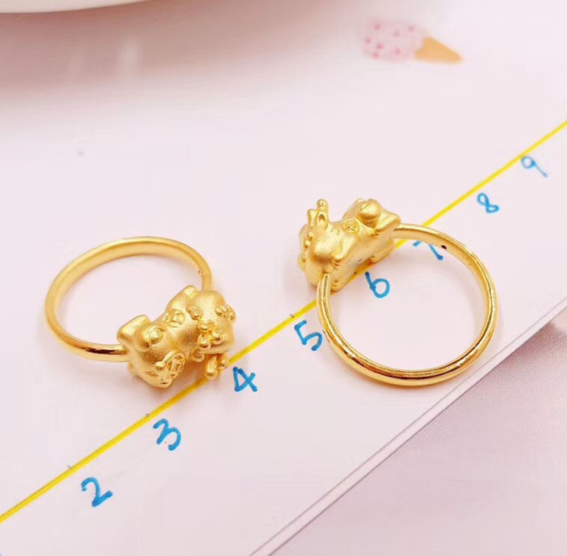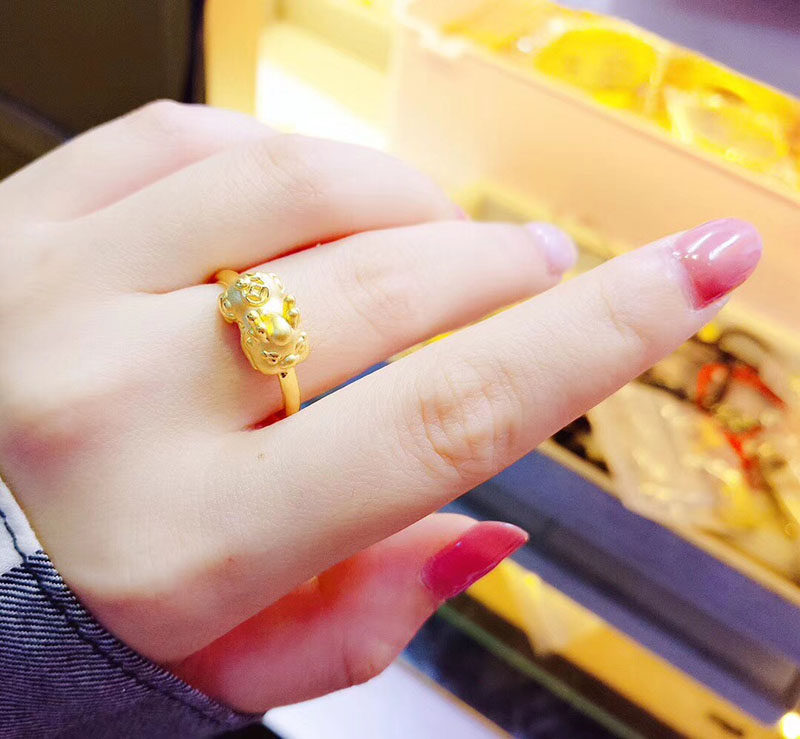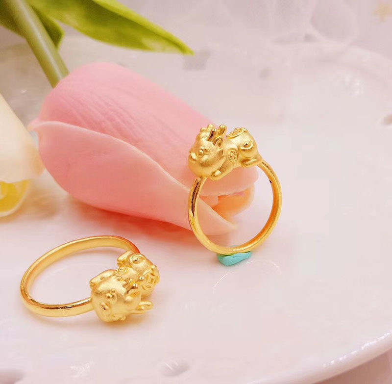 黄金貔貅戒指999足金戒指指环3D硬金萌萌皮休转运珠手串戒子女款