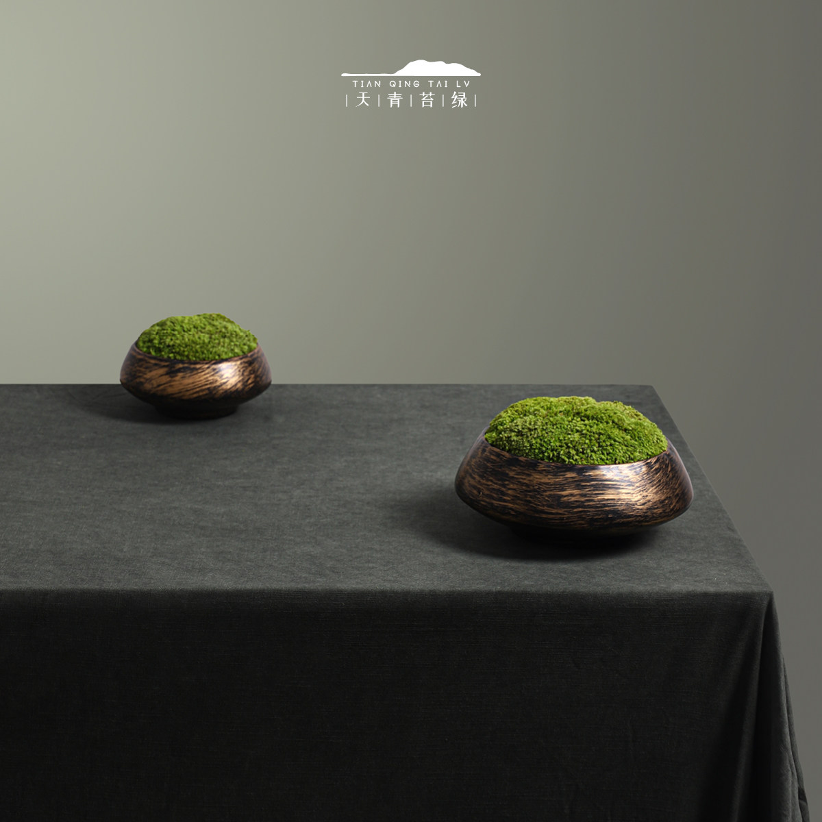 天青苔绿 新中式永生苔藓绿植景观 样板间售楼处会所茶几桌面摆件