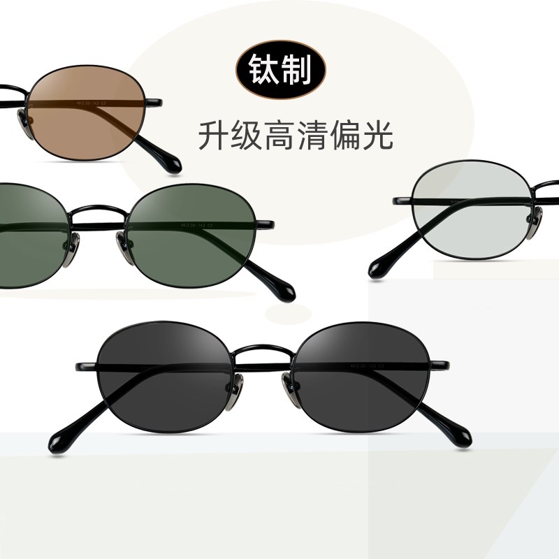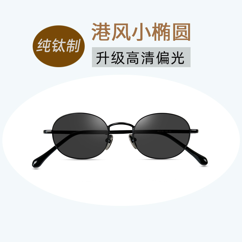 2024新款复古迷你小椭圆墨镜女级感防紫外线纯钛偏光镜开车眼镜