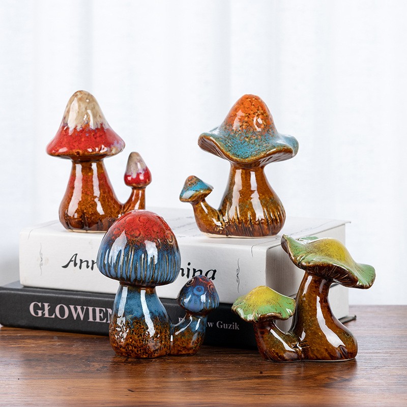 创意陶瓷窑变工艺品仿真蘑菇摆件家居玄关客厅电视柜装饰品摆定制