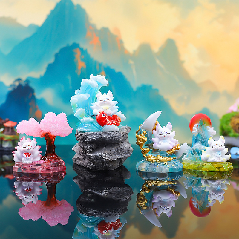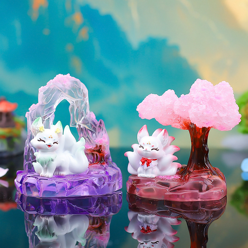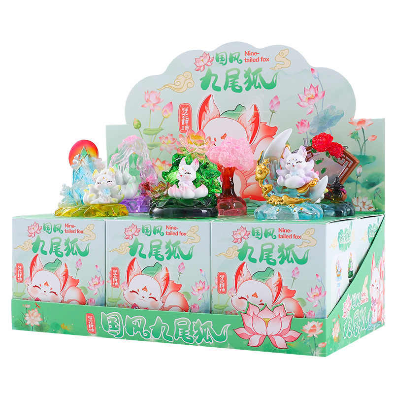 国风九尾狐带灯盲盒手办国潮古风摆件推荐礼物家居装饰品