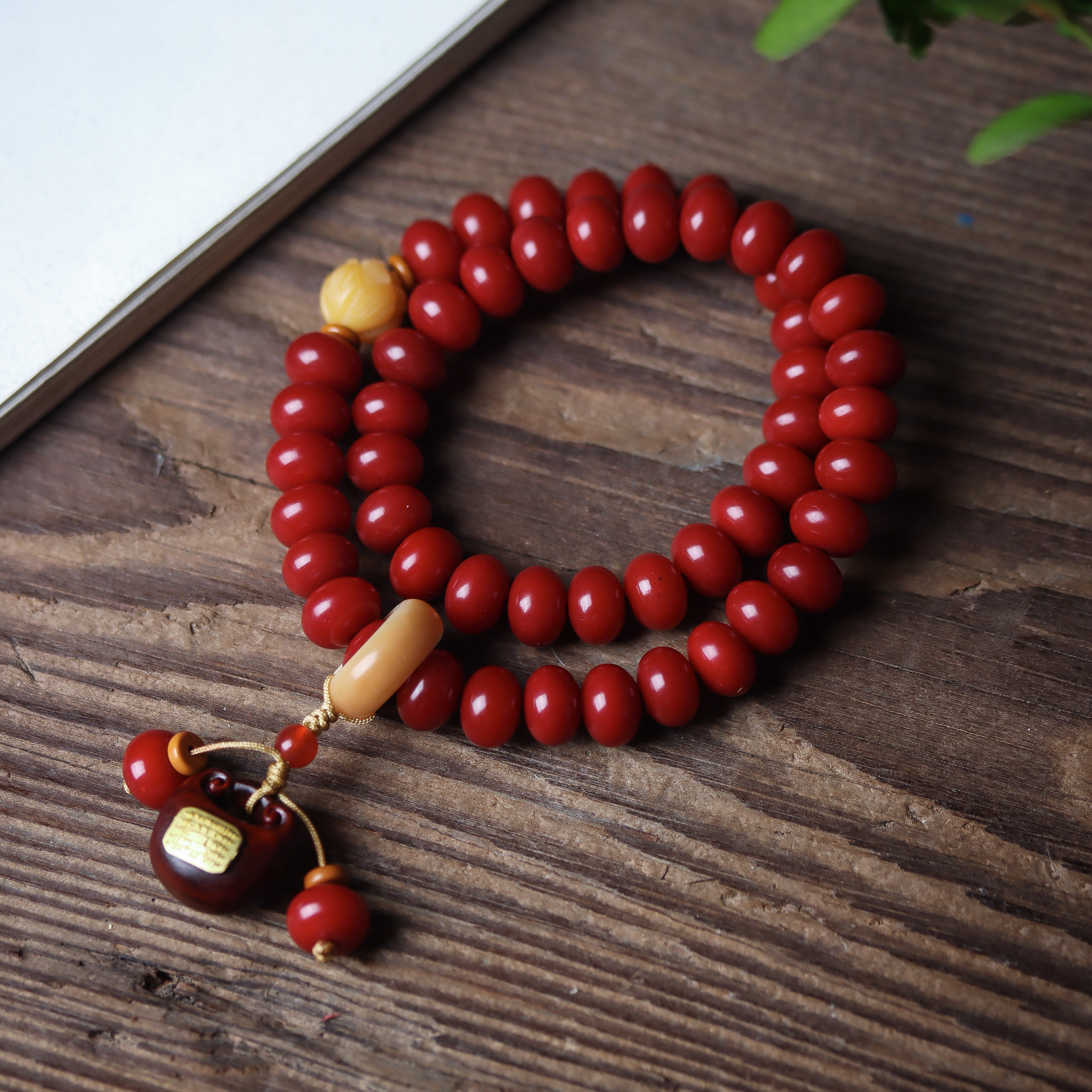 喜乐长安红心菩提根算盘珠双圈手链白玉菩提手持车挂福袋吊坠手串