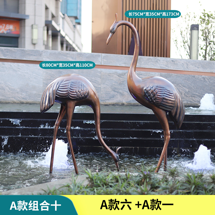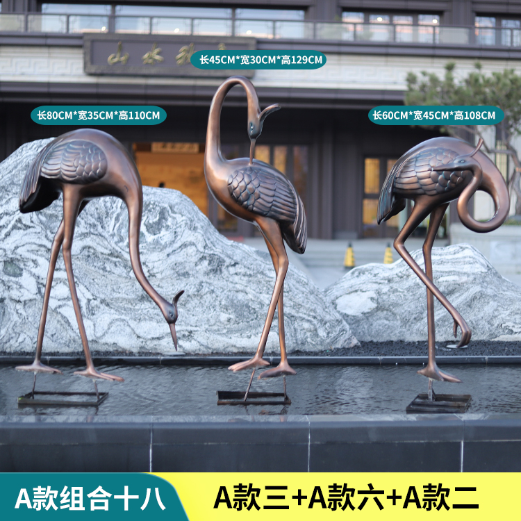 仿铜仙鹤雕塑玻璃钢摆件售楼部庭院水池假山园林景观美陈鸟类装饰