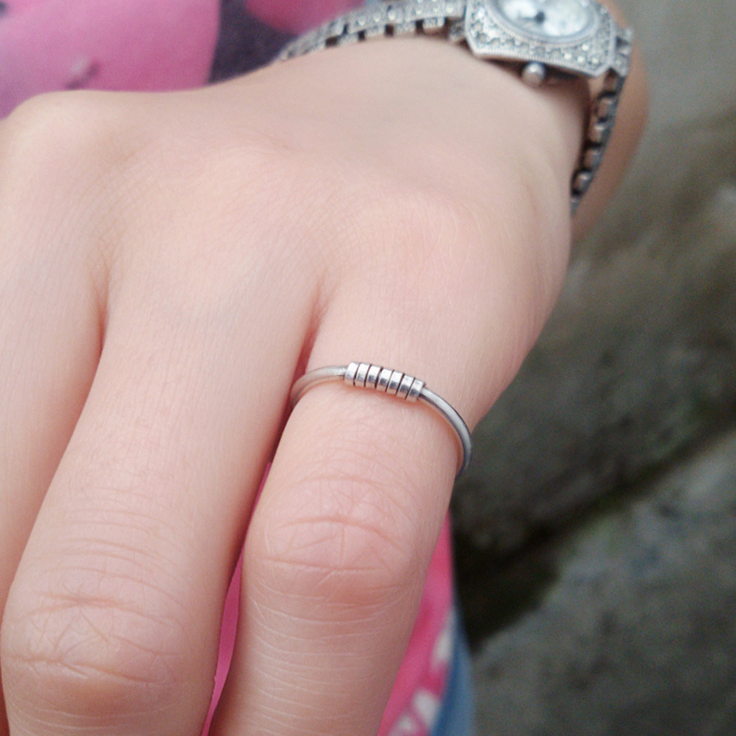 集泰s925纯银手工戒指简单极细银丝缠绕圈日韩男女学生戴小指尾戒