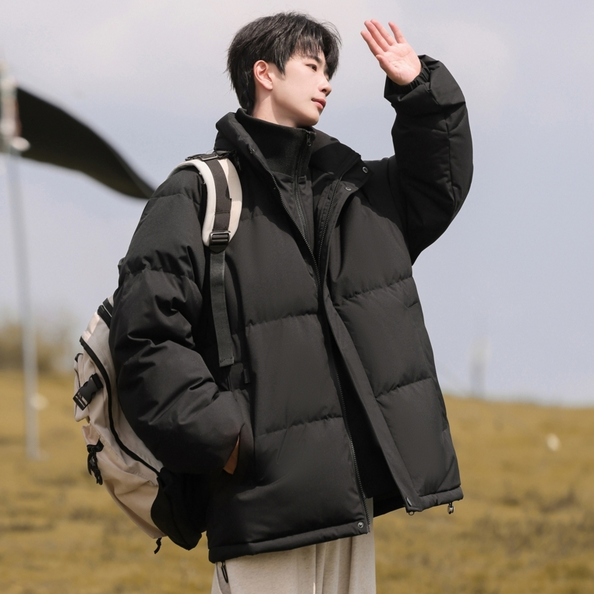 雪中飞2025冬新款男士短款面包服经典纯色羽绒服立领保暖宽松年轻