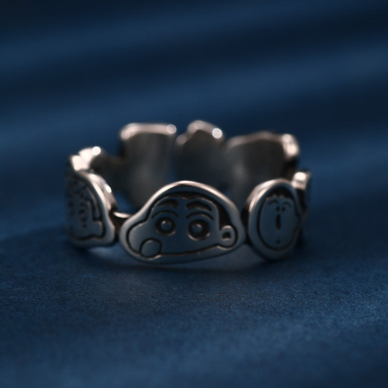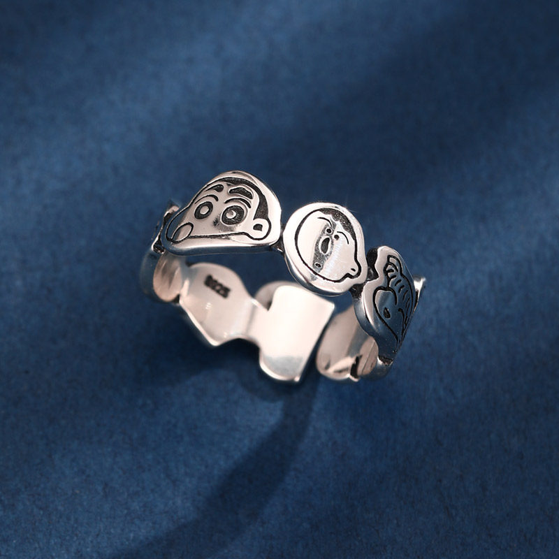925银开口戒指 卡通可爱 动漫人个性食指搞怪小众儿童男女