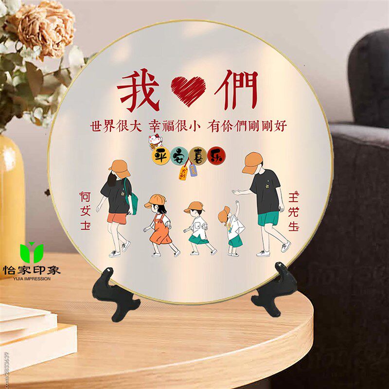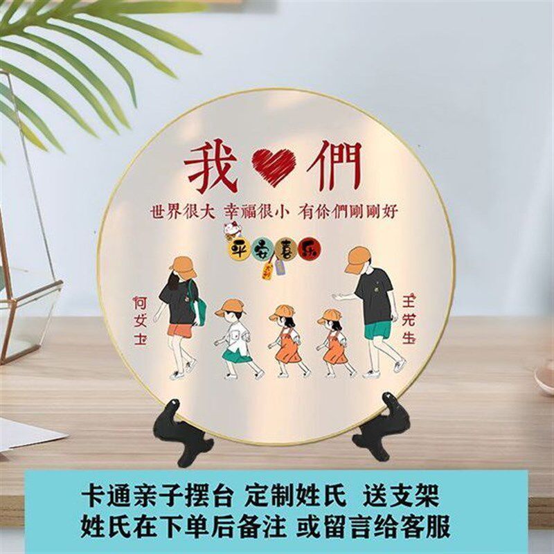一家三口四口五口卡通亲子摆台客厅小摆件装饰画相框乔迁定制