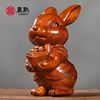 绿色木雕元宝兔子摆件实木质十二生肖兔家居客厅桌面装饰工艺礼品