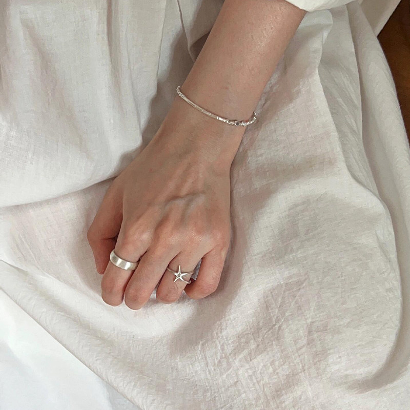 哑光银色海星戒指女冷淡风双层食指戒小众设计轻奢高级感简约指环