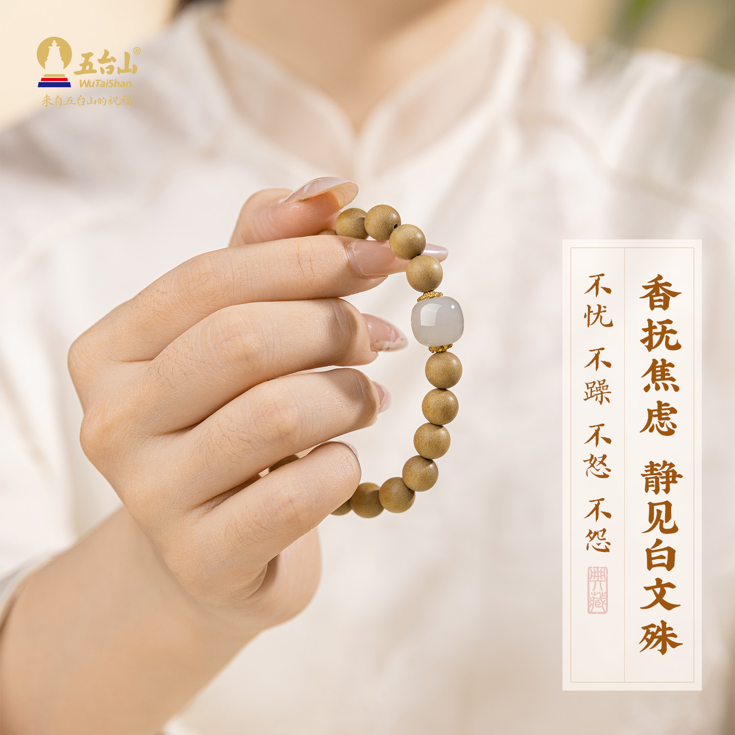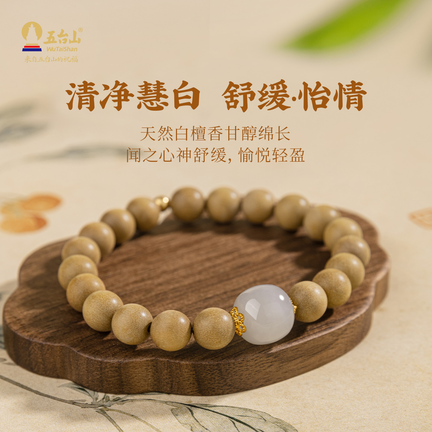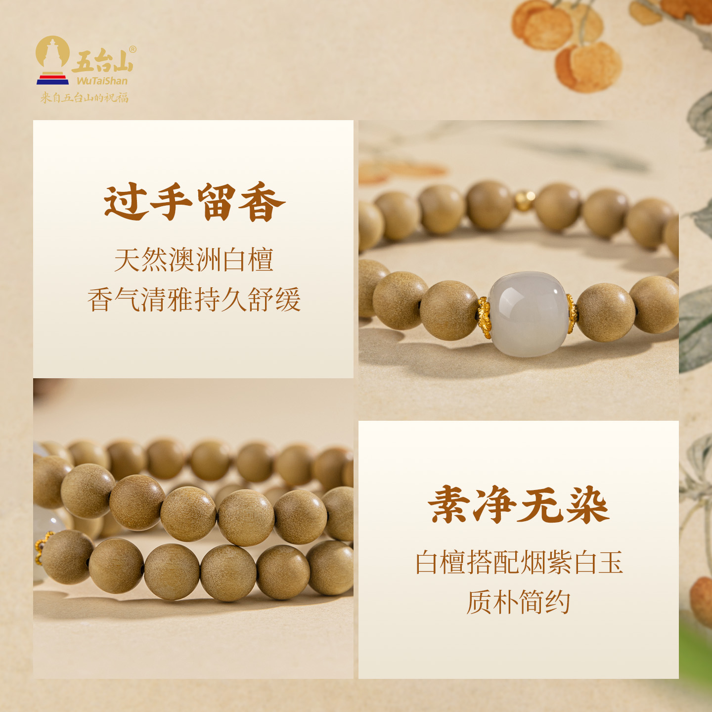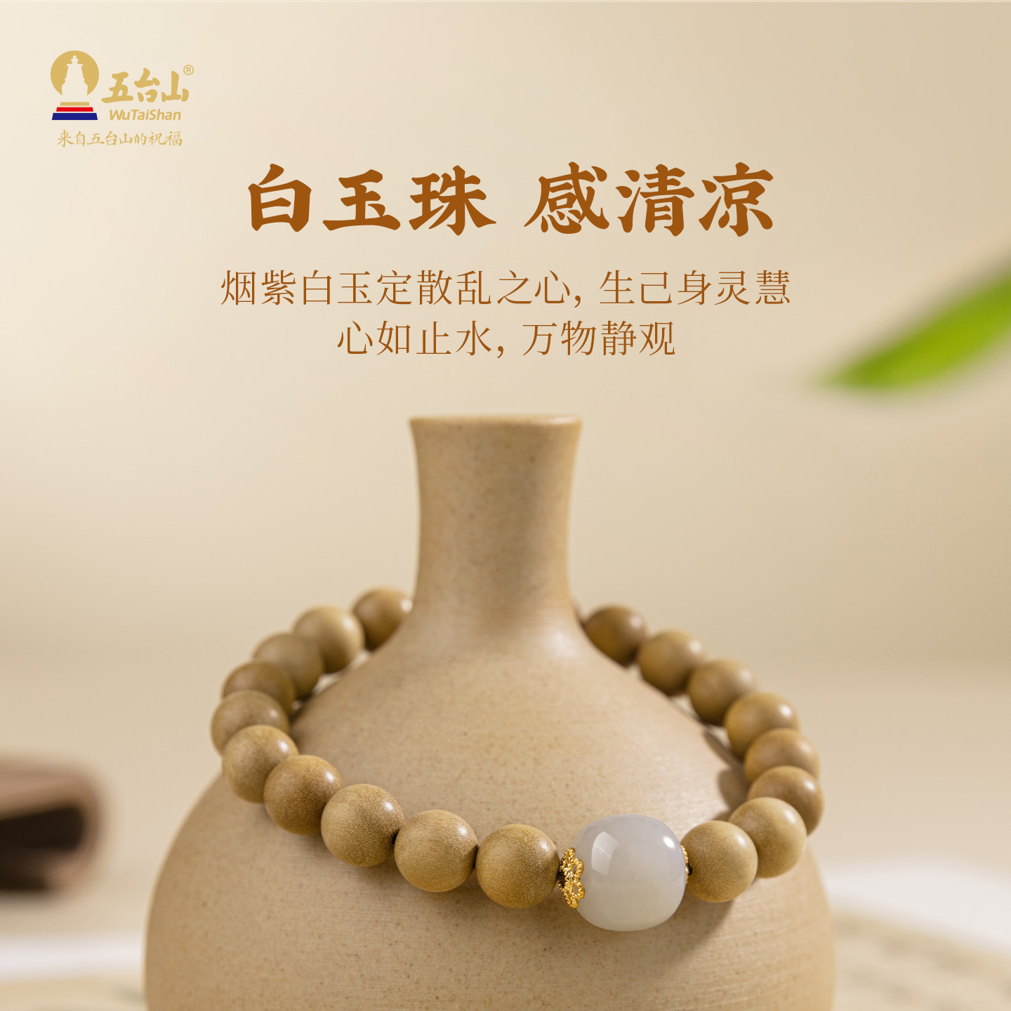 五台山澳洲白檀和田玉手串女烟紫白玉转运珠天然檀木情绪稳定手链