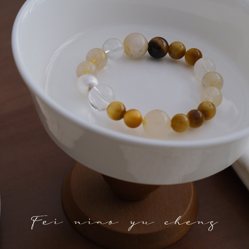 飞鸟屿城/原创天然虎眼石金发晶招财手串小众设计白水晶手链