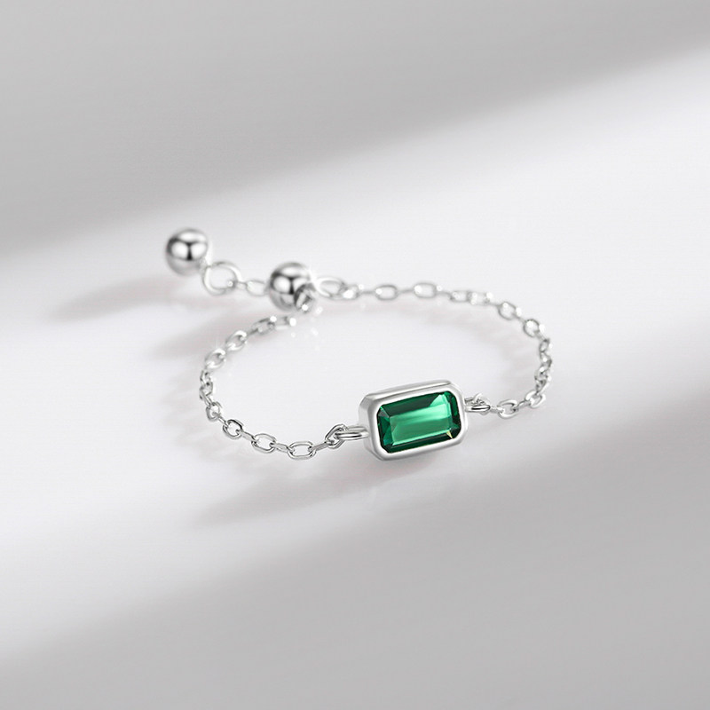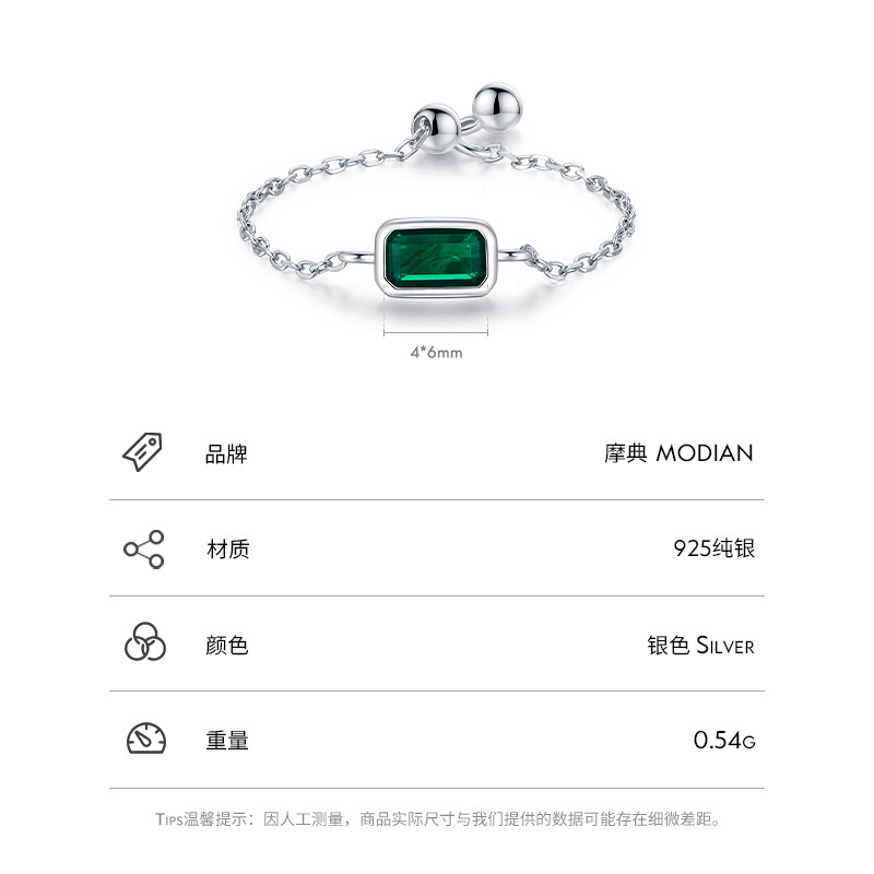 MODIAN 925纯银长方锆石戒指女原创设计小众时尚ins风可调节饰品