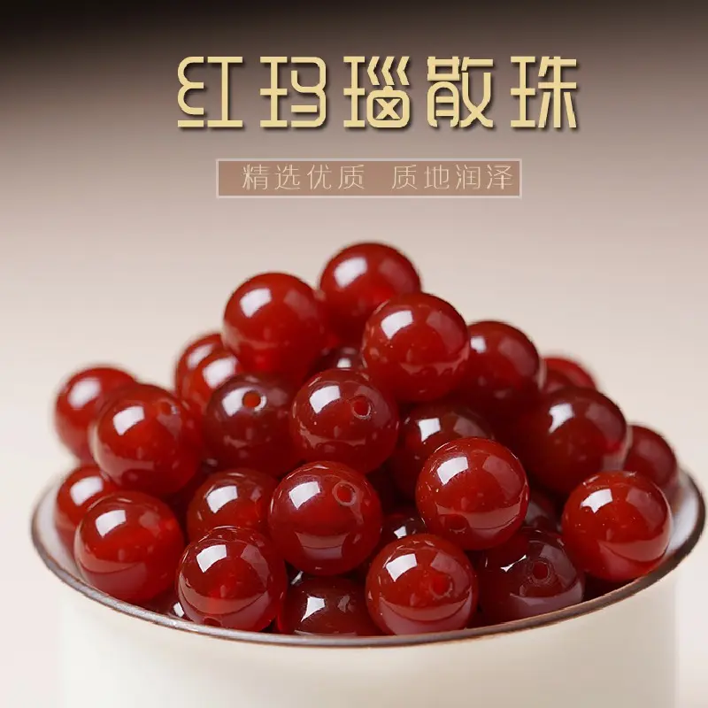 红玛瑙散珠红色圆珠diy手串配珠手工串珠编制材料手链饰品配件