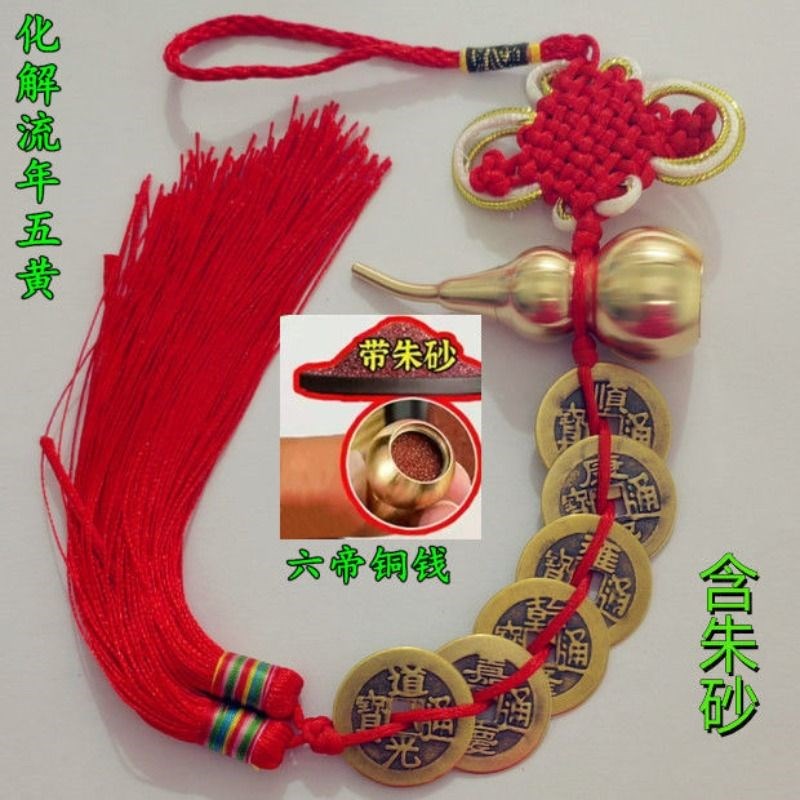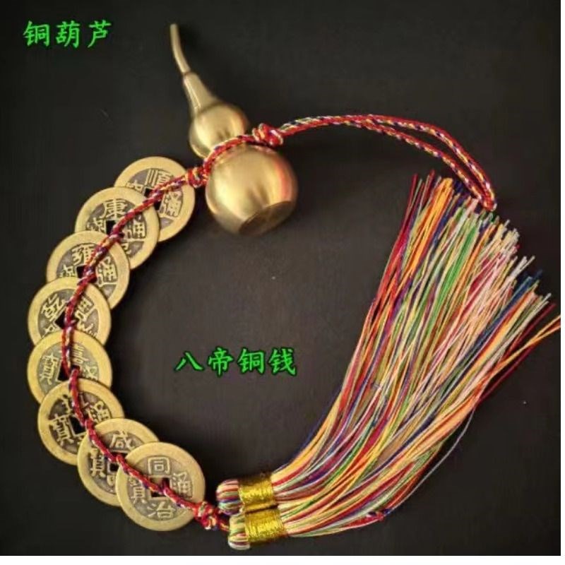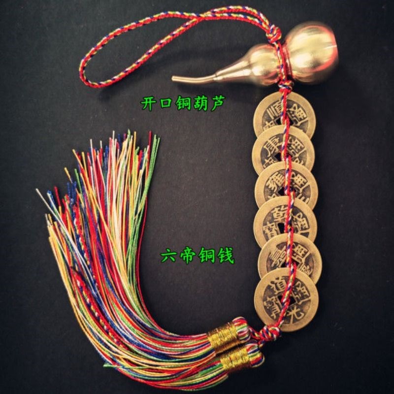 六帝钱开口铜葫芦黄绳五帝铜钱化门对门五黄二黑玄关化解门口客厅