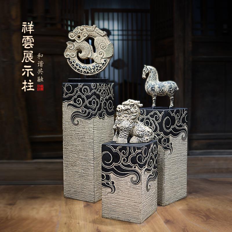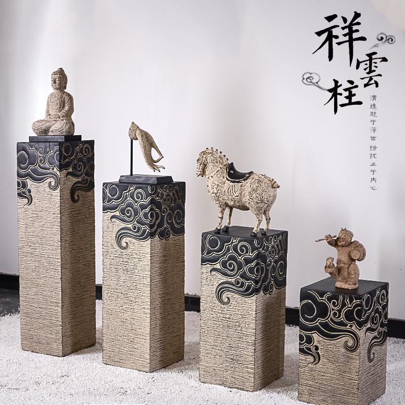 新中式摆件祥云柱展示柱仿石柱墩玄关禅意落地底座客厅茶室装饰