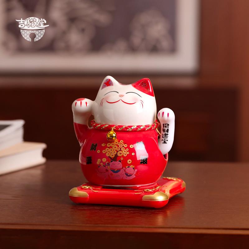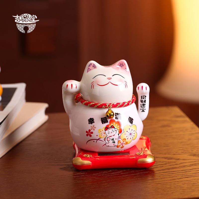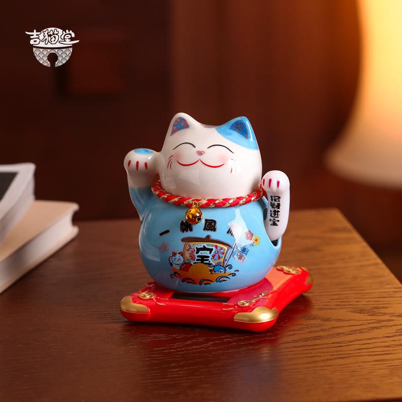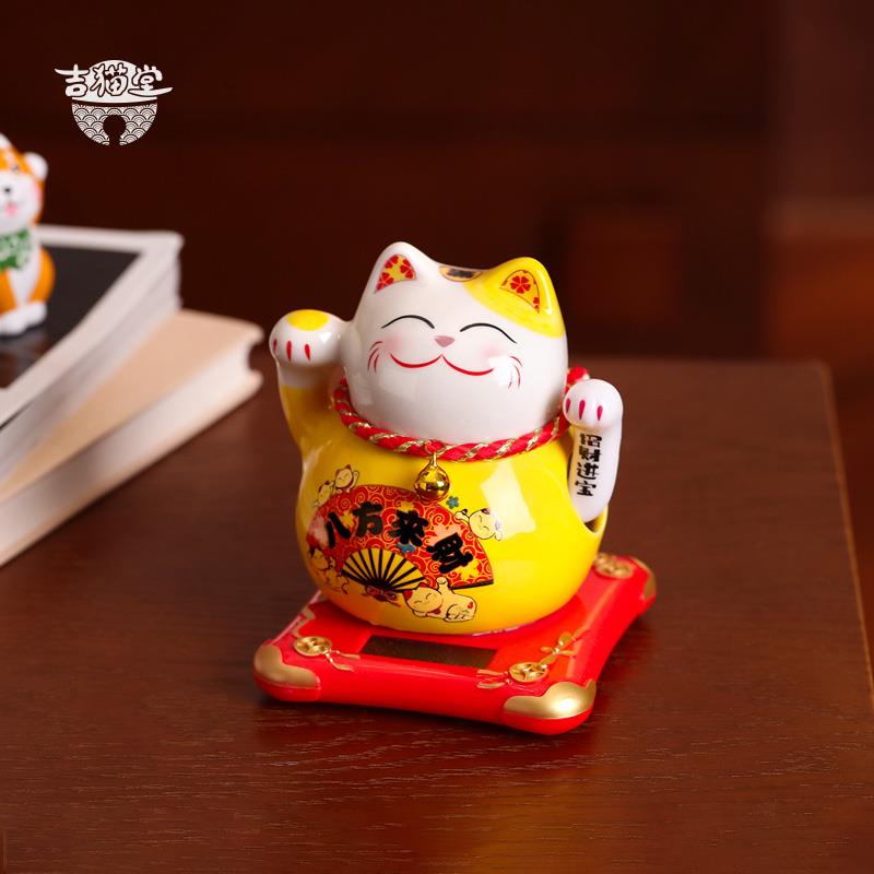 太阳能招财猫自动摇手店铺开 业礼物车载中控台小摆件办公桌面装