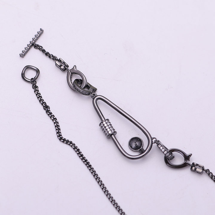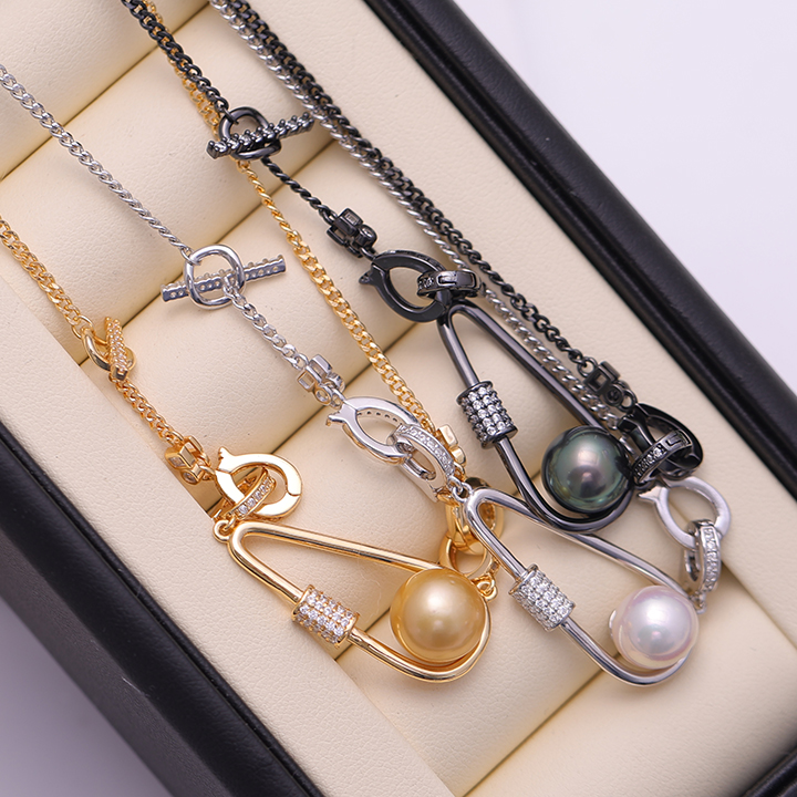 DIY珍珠配件s925纯银豪华加粗可脱卸套链项坠一体链空托配9-11mm