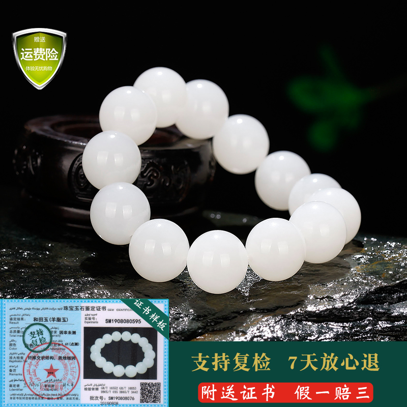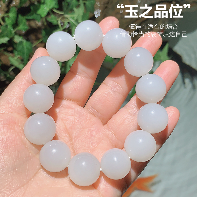 玉说和田玉羊脂白玉手串男士约15mm16mm玉珠男女款10mm18mm玉手链
