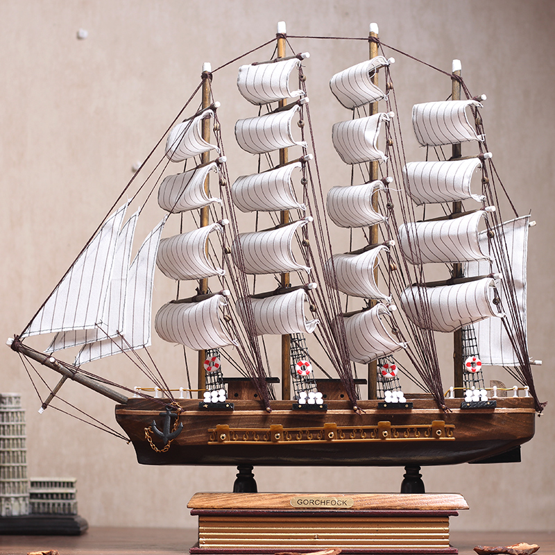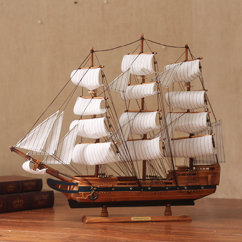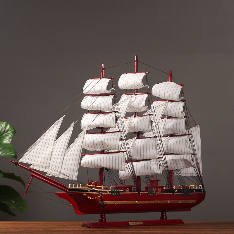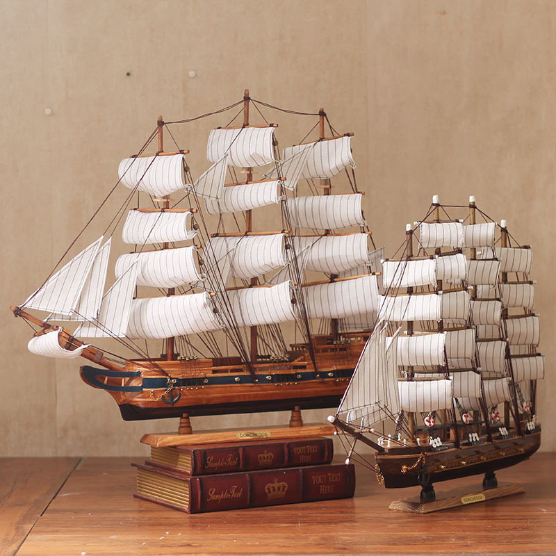一帆风顺帆船模型摆件仿真实木船酒吧餐厅柜台装饰木质工艺船礼品