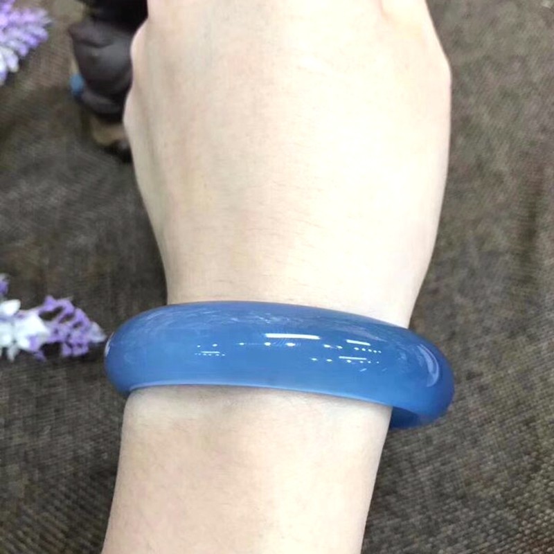 翡翠手镯蓝玉髓手镯冰种玉髓超冰透玛瑙手镯道具手镯拍照儿童手饰