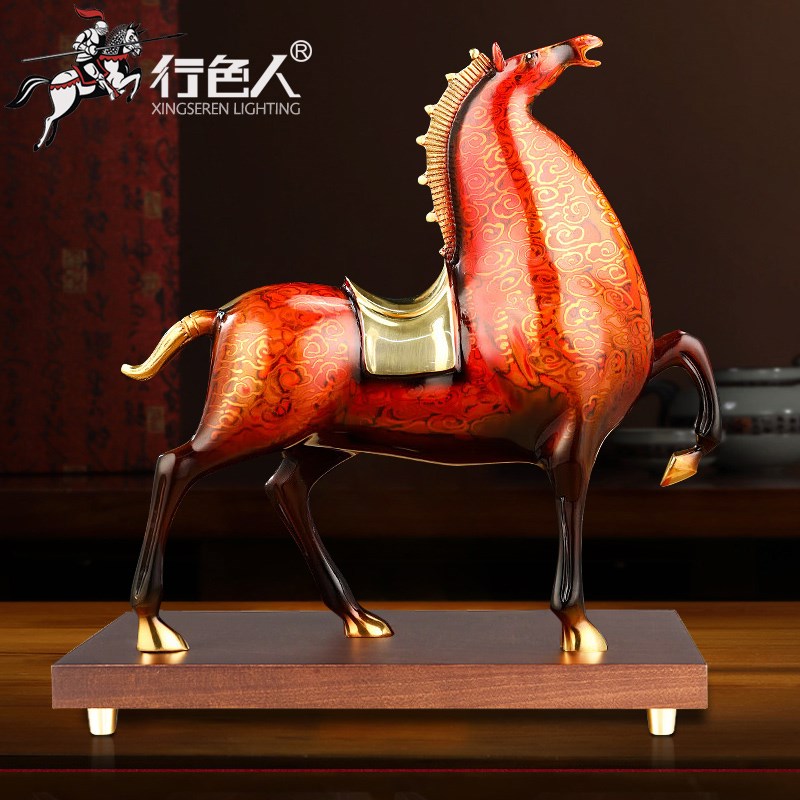 《马到成功》全铜马摆件招财将军马大漆工艺品红色马客厅生肖马铜
