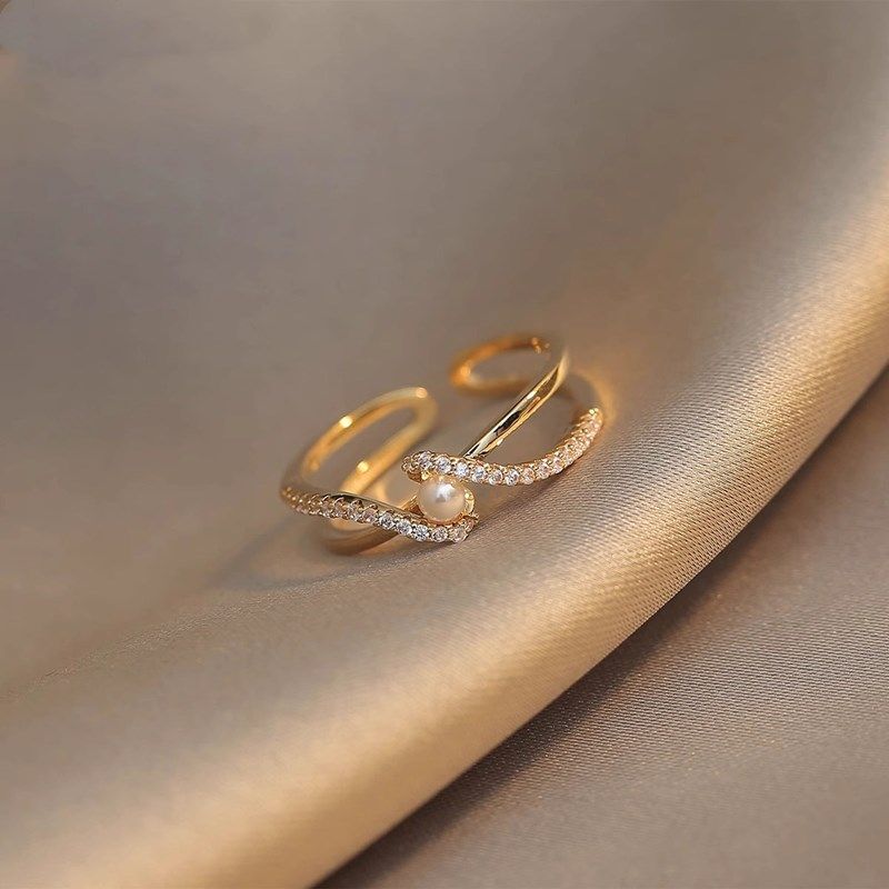 925纯银戒指女独特交叉满钻高级2024年新款ins个性开口戒气质指环