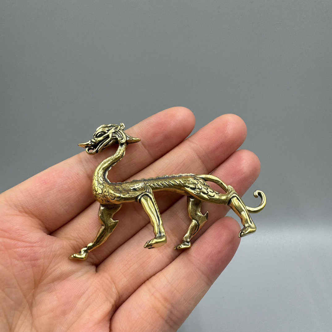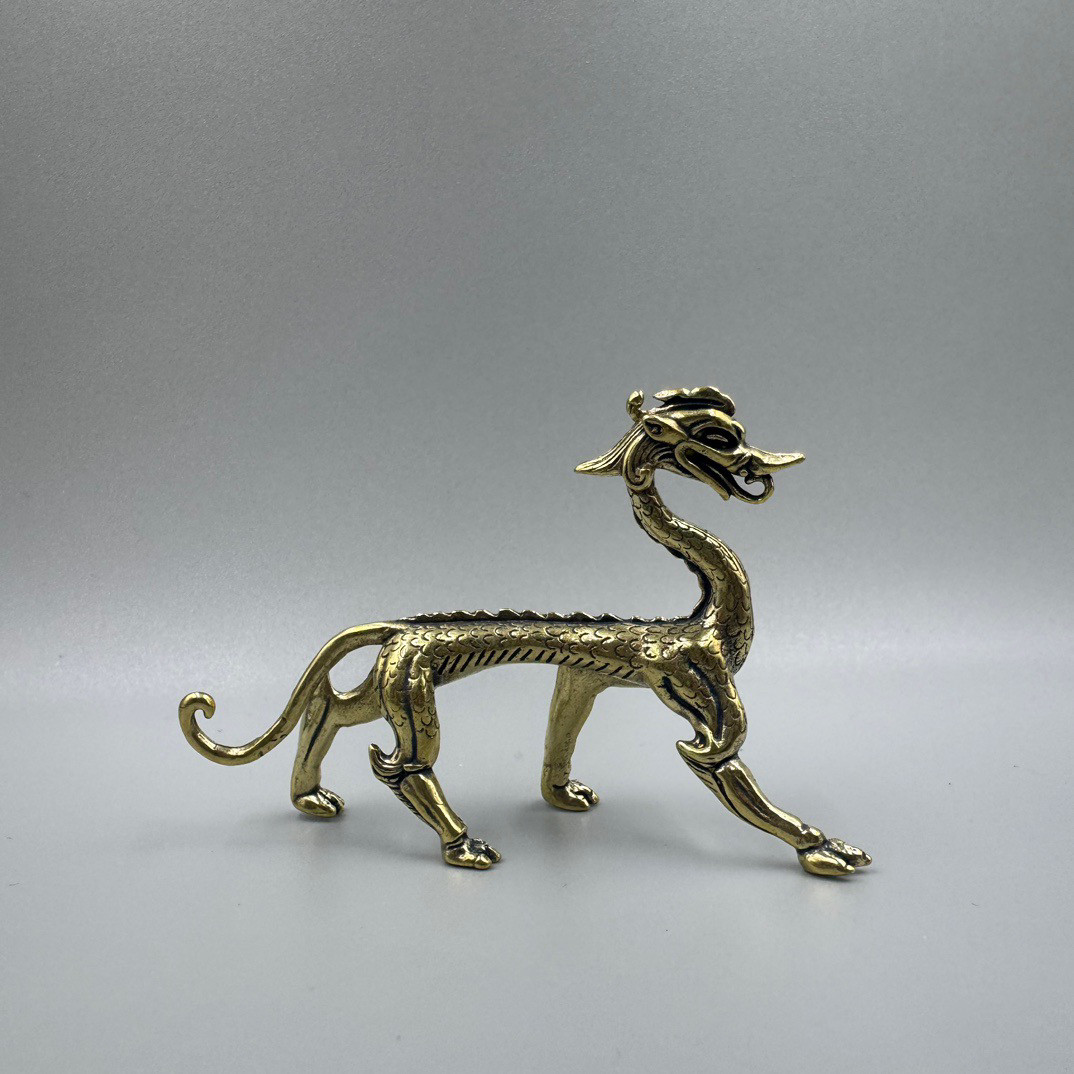 纯黄铜走龙桌面摆件螭龙仿古玩工艺品茶宠摆饰青龙铜雕老铜器收藏