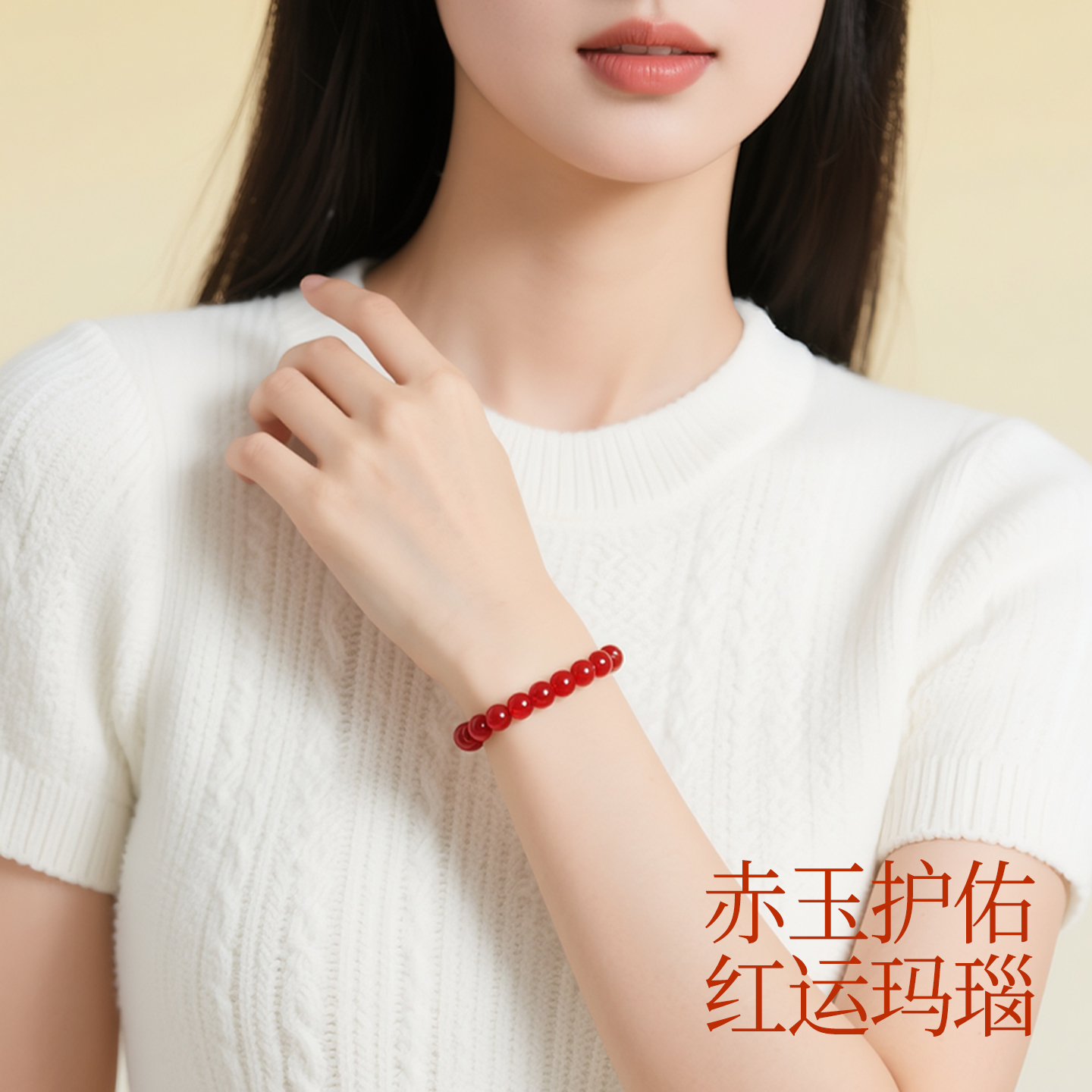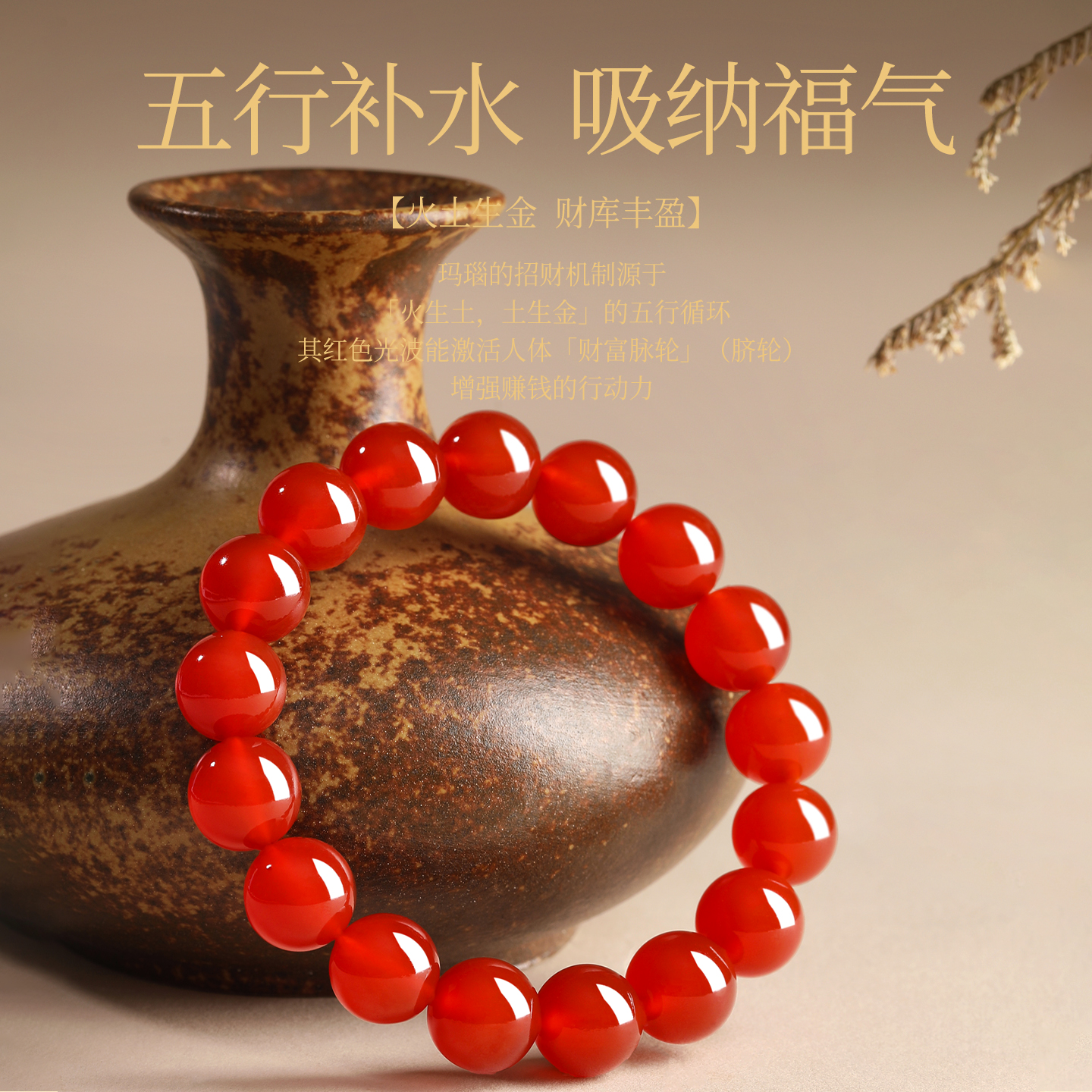 天然红玛瑙手串正品巴西红色水晶手链黄水晶转运珠南红官方旗舰店