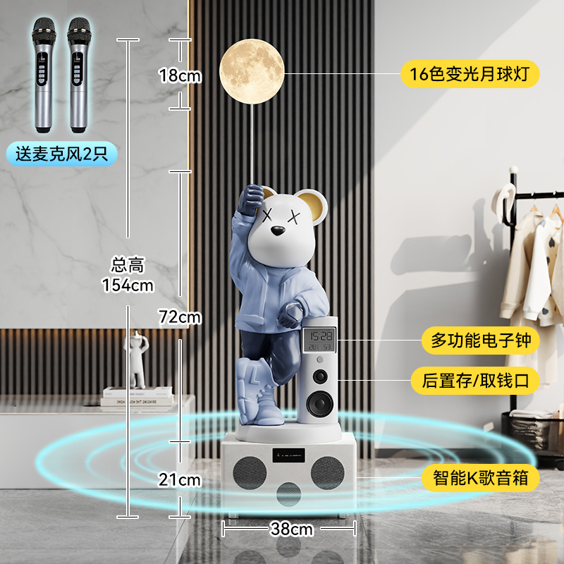 时钟暴力熊客厅摆件家庭ktv蓝牙k歌音响落地存钱罐搬家乔迁礼物