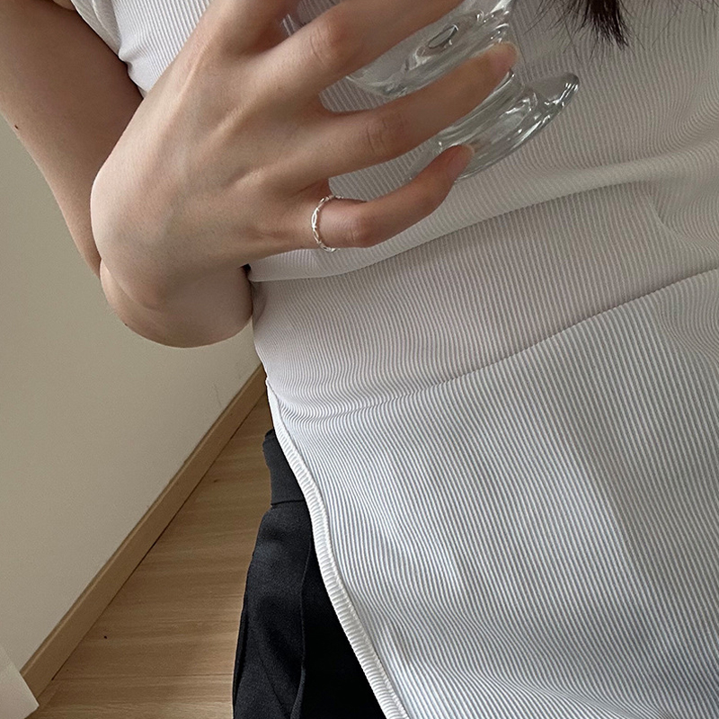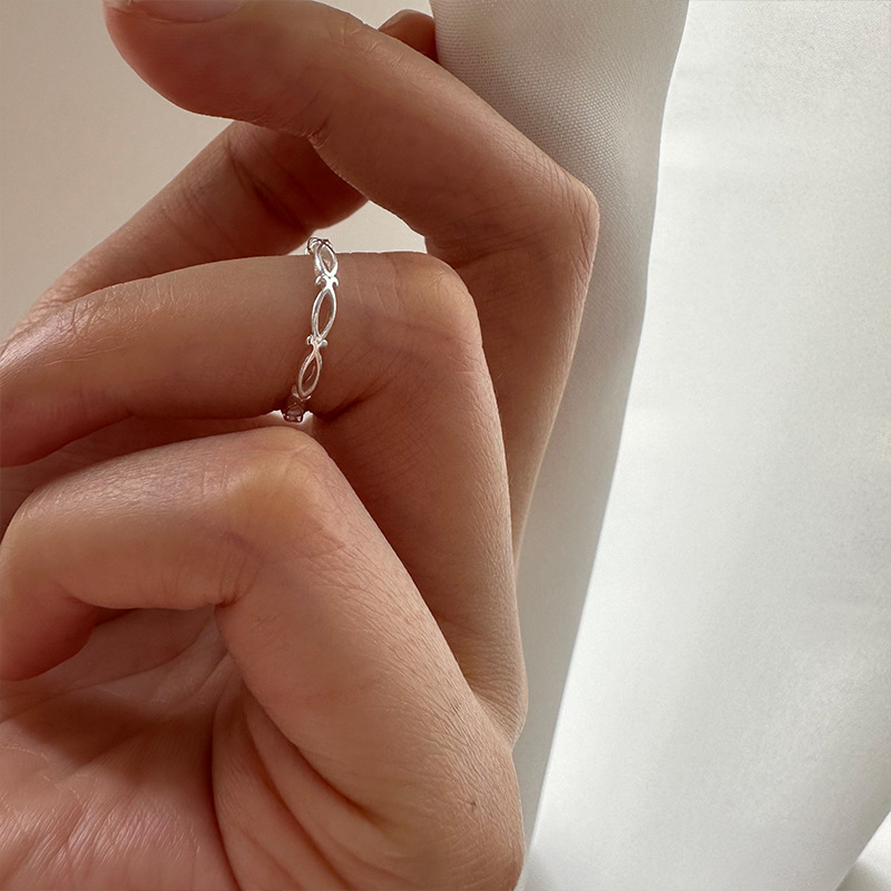 通体S925纯银不规则镂空椭圆尾戒女小众设计高级感素圈开口戒指环