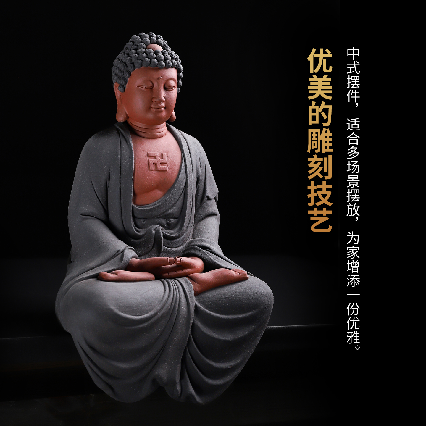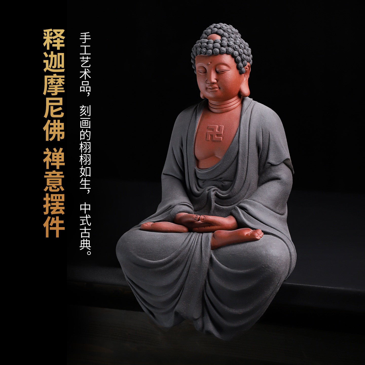 东方泥土 张明贵大师作品陶瓷释迦牟尼佛摆件中式家居客厅装饰品