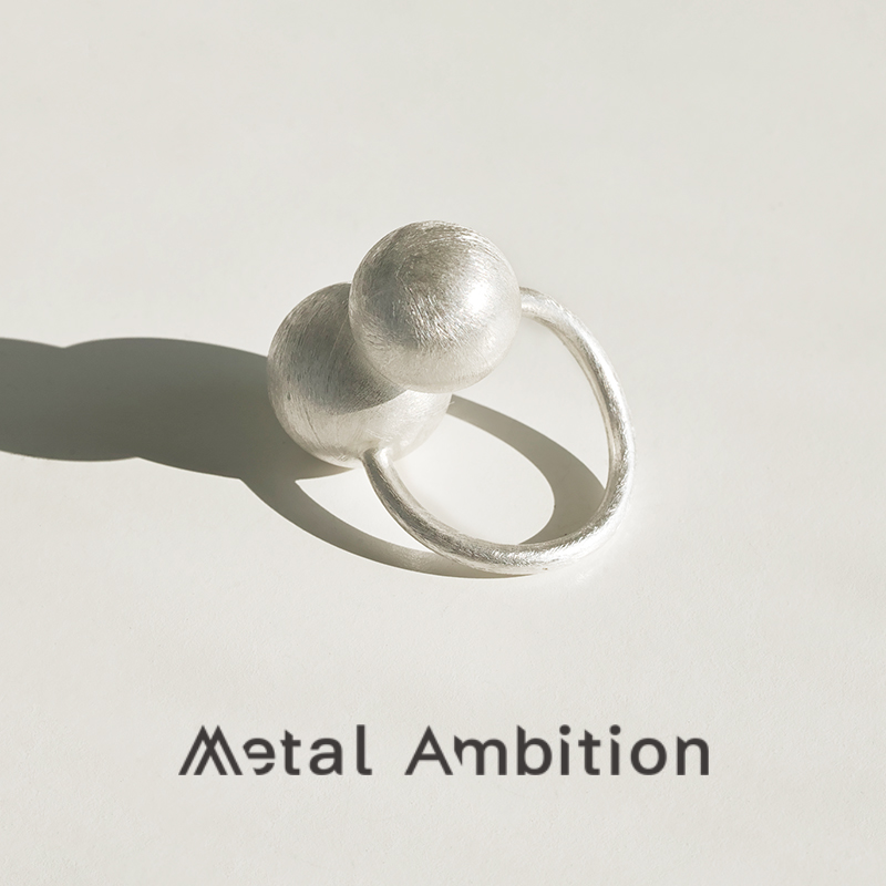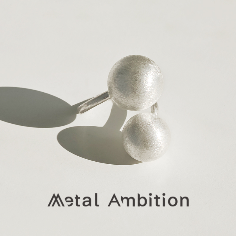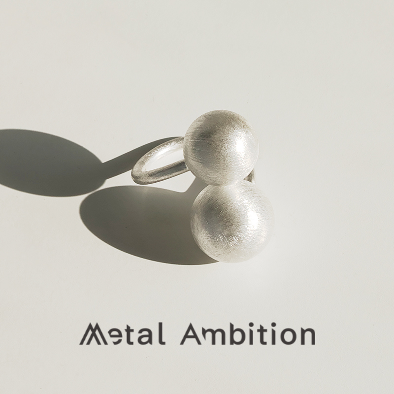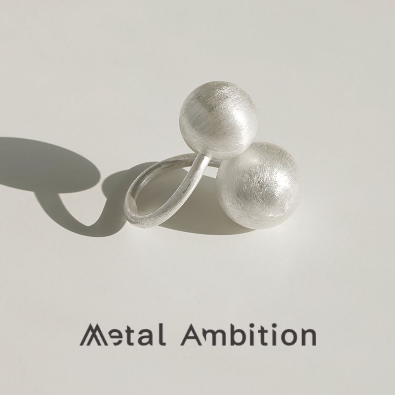 S999纯银拉丝圆球戒指女小众设计轻奢简约高级感开口戒法式复古