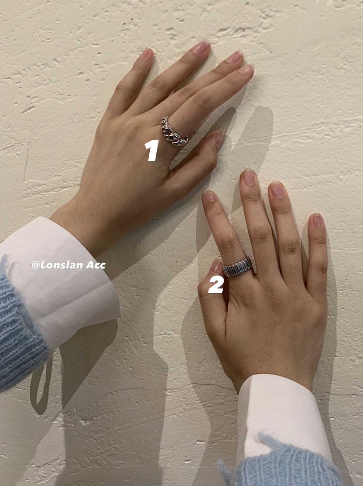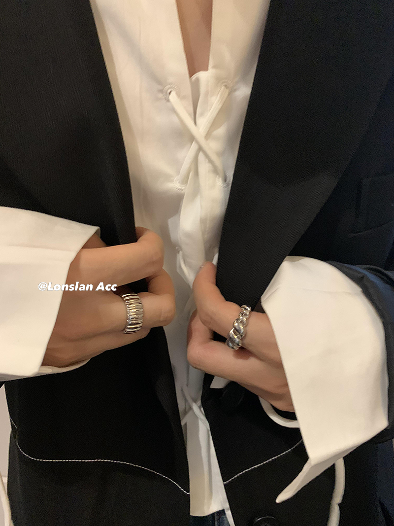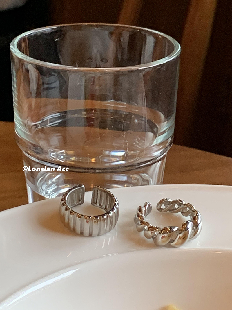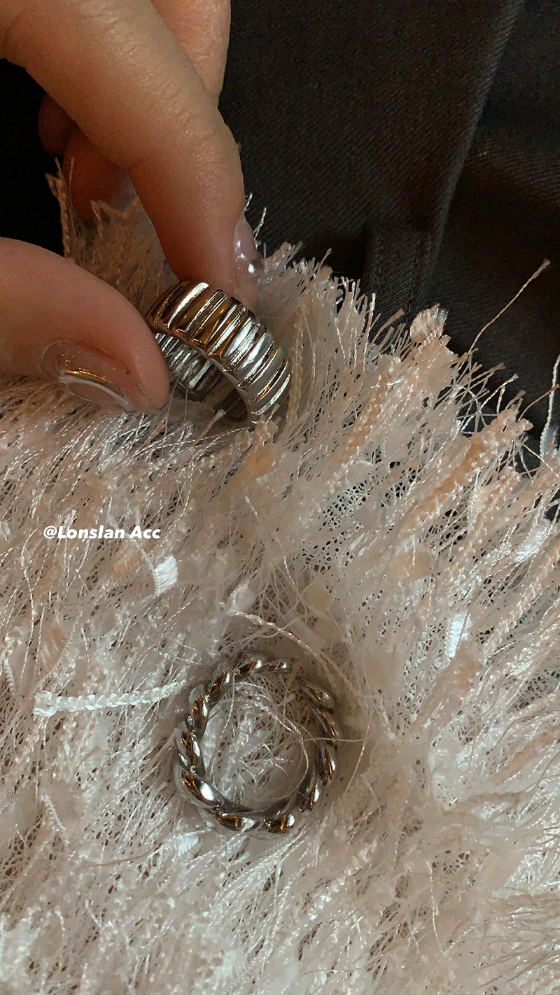 Lonslan ACC 法式复古麻花金属银色百搭开口戒指套装两件套