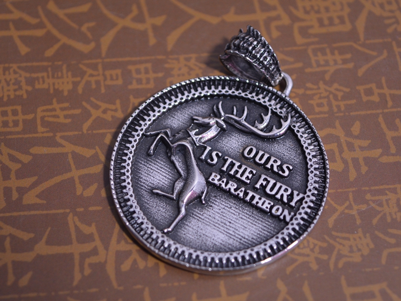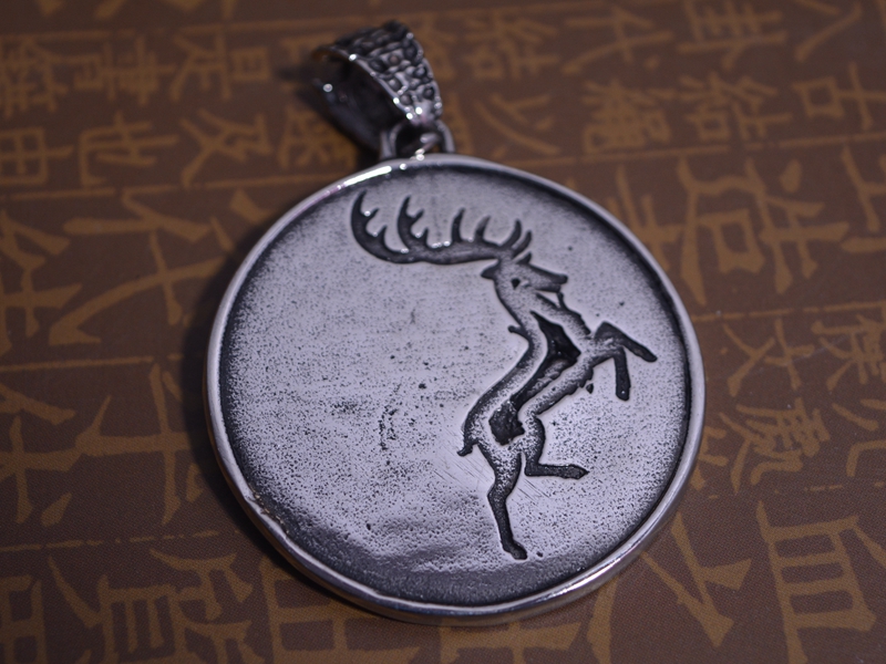 钛钢吊坠奖牌形麋鹿图案个性男女项饰做旧百搭保色316L不锈钢饰品