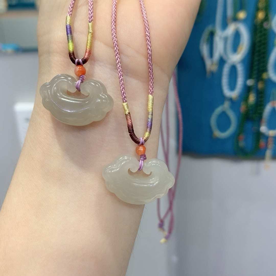 批发天然和田玉如意锁吊坠青海料情侣款祥云锁牌玉石挂件直播货源