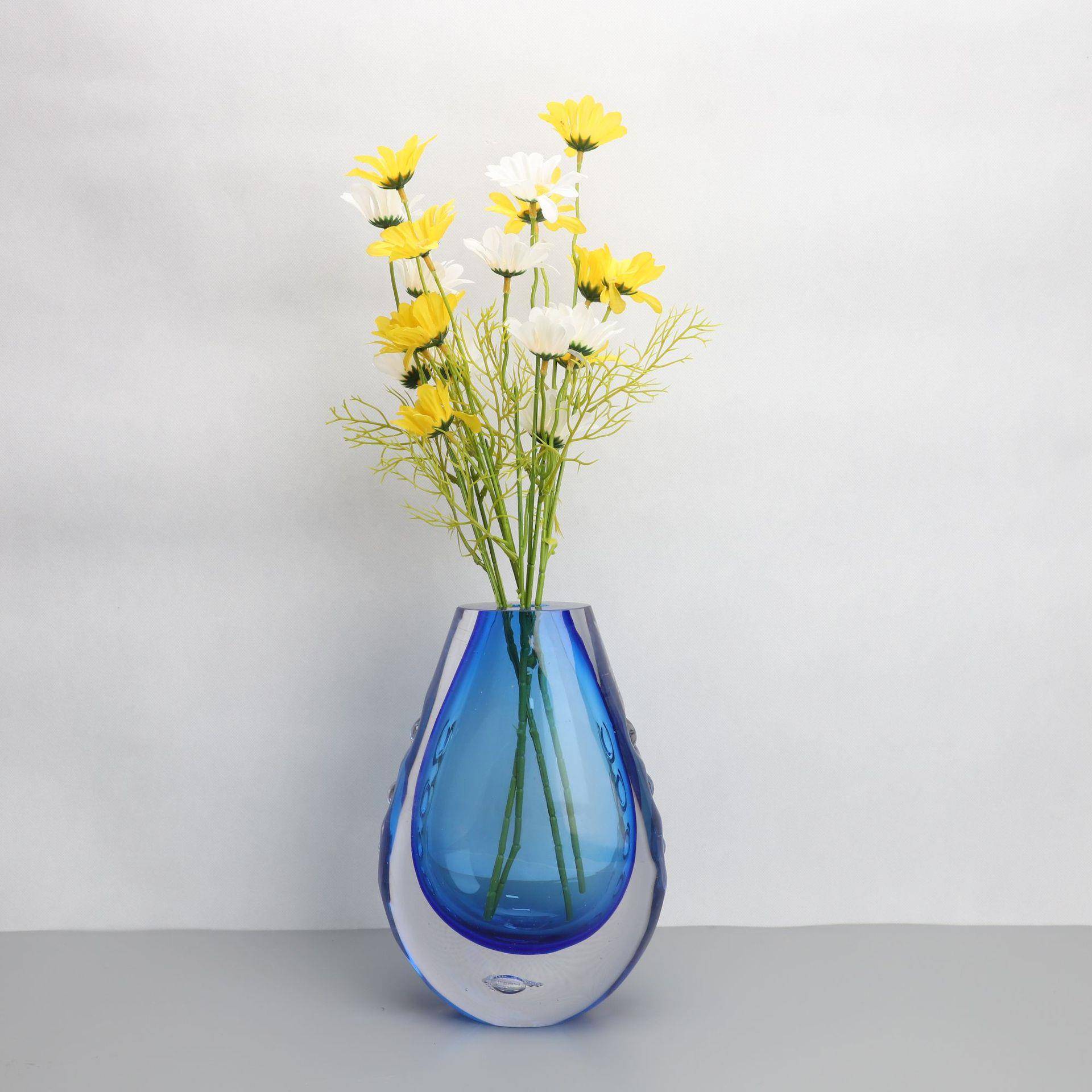 新中式蓝色水晶花器花插样板房茶几卧室书房客厅桌面软装饰品摆件