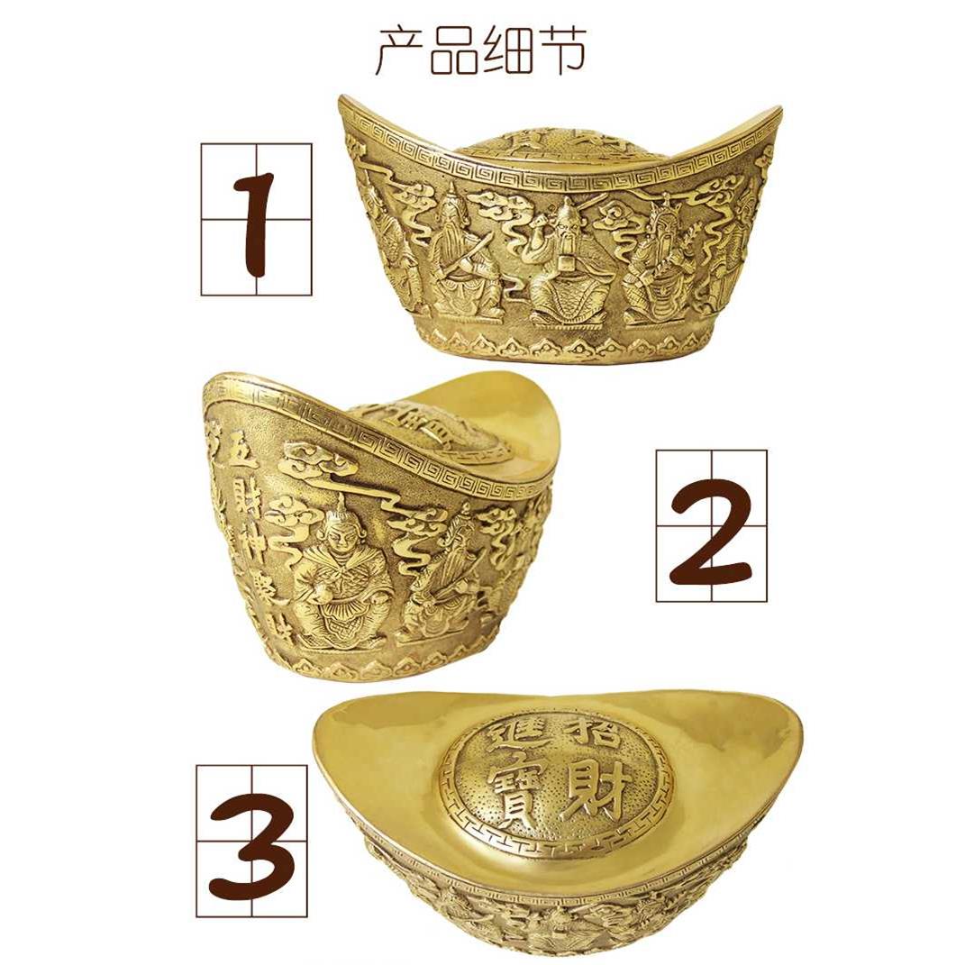 大号五路财神金元宝 黄铜元宝进宝招财铜元宝工艺品风水家居摆件