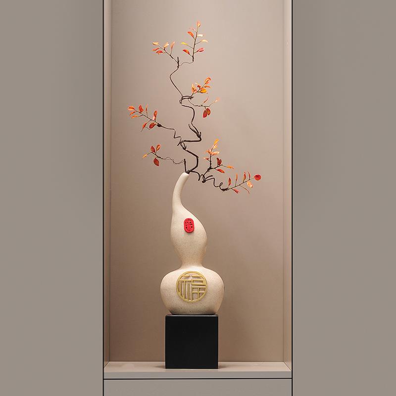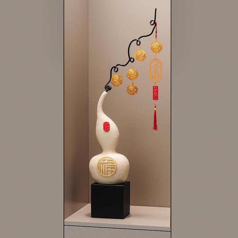 新中式入门玄关壁龛屏风陶瓷葫芦花瓶摆件客厅电视柜乔迁新居礼物