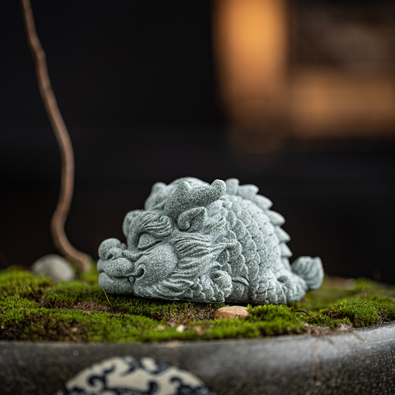 青砂石国潮风祥瑞神龙萌趴生肖龙家居桌面客厅装饰摆件鱼缸造景