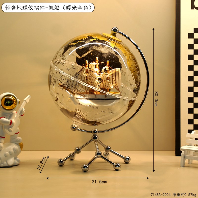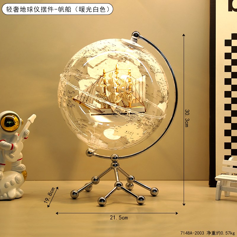 透明帆船a地球仪摆件轻奢高档客厅家居装饰品带灯办公室桌面工艺