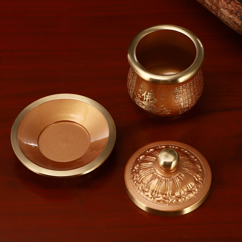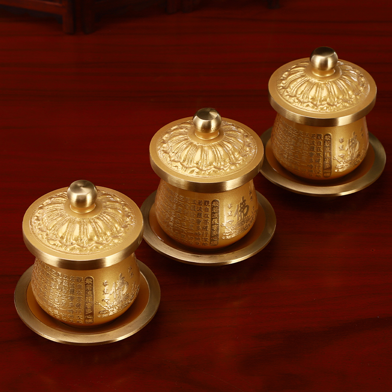 佛前水供杯供水杯供佛用品圣水杯黄铜心经贡杯佛堂观音净水杯供水
